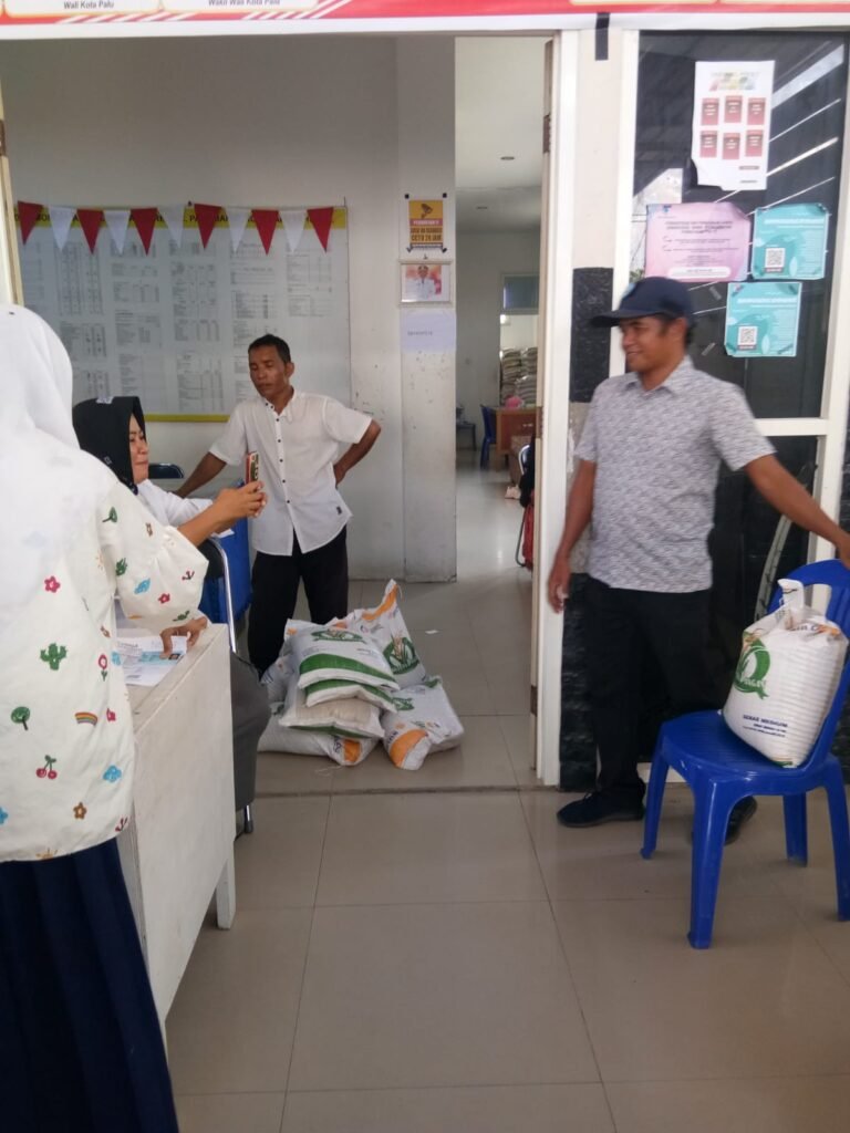 Warga Lere menerima bantuan beras Bulog dari Dinas Ketahanan Pangan Provinsi, Senin (25/09). Bertempat di Halaman Kantor Kelurahan Lere, bantuan ini diperuntukkan buat warga Kelurahan Lere yang masuk dalam data DTKS.